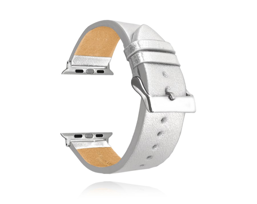 Stříbrný kožený řemínek MINET Top Grain pro APPLE WATCH 38-40 mm