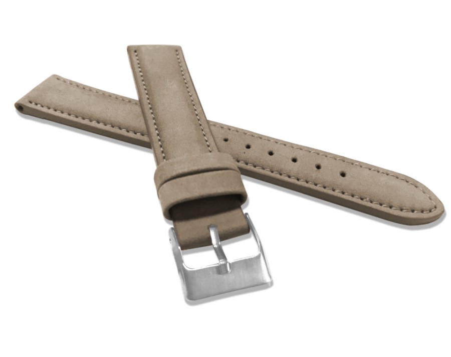 MINET MSNUC18 - Světle hnědý prošitý kožený řemínek MINET z jemného nubuku - 18