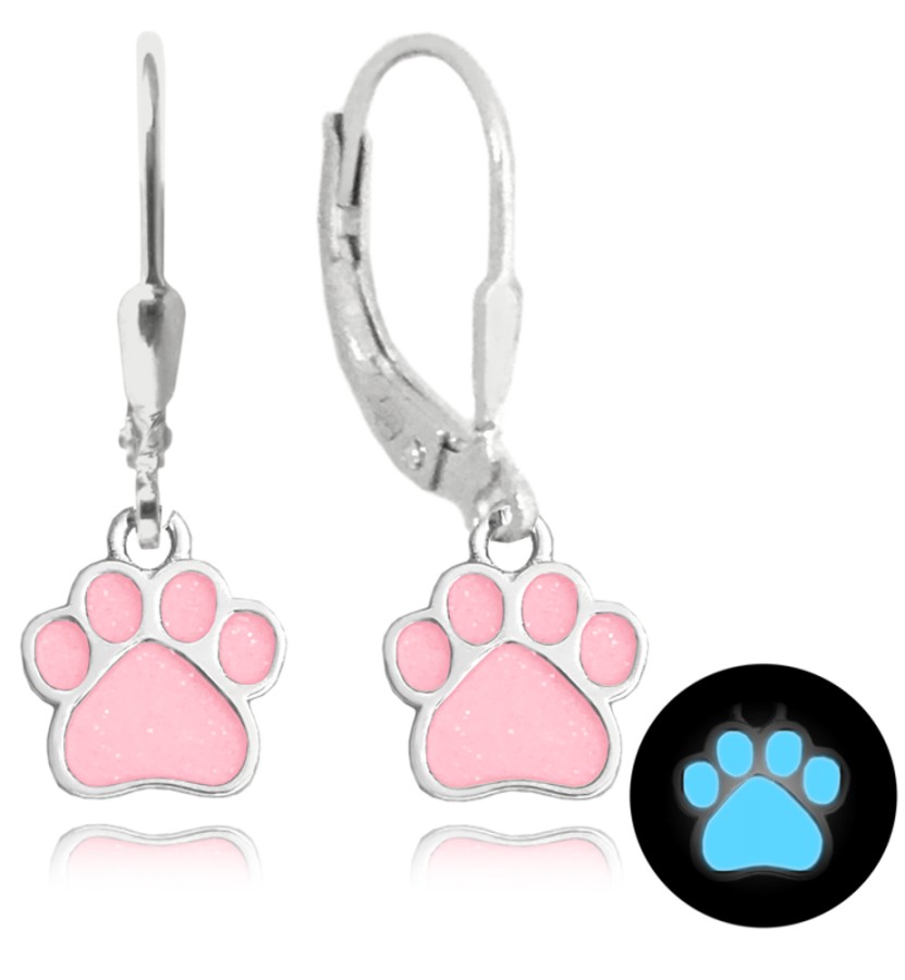 Svítící růžové stříbrné náušnice MINET TLAPKY