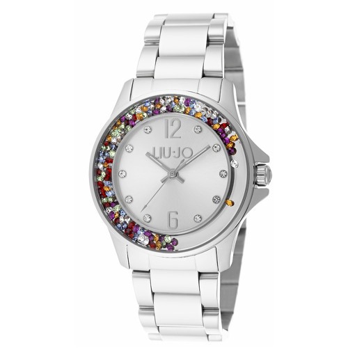 Stříbrný ciferník s ukazatelem času a vteřinovou ručičkou,