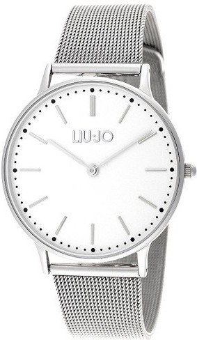 Stříbrný ciferník s ukazatelem času, vteřinovou ručičkou.