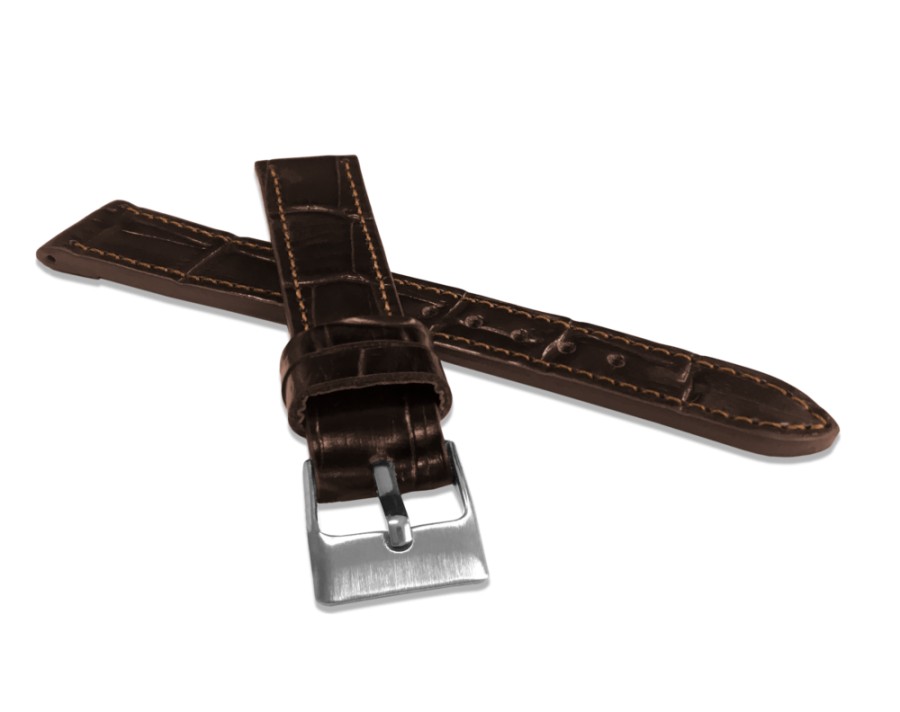LAVVU LSJUC16 - Tmavě hnědý prošitý řemínek LAVVU CROCO z luxusní kuže Top Grain - 16