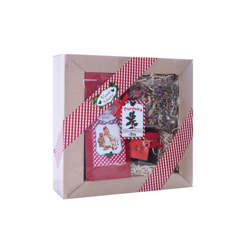 Dárková sada obsahuje: čaj Vánoční punč ovocný čaj 70g, med k čaji 145ml, purpura, krabička, přebal a dekorace.